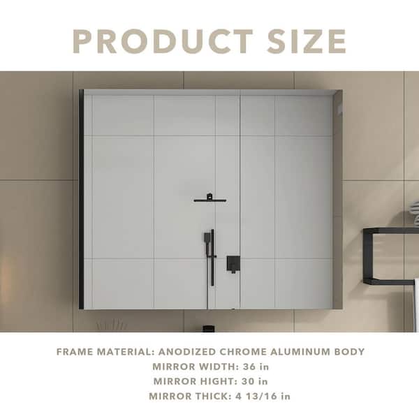 36 in. W x 30 in. H Rectangular Aluminum Surface Mount Medicine Cabinet with Mirror