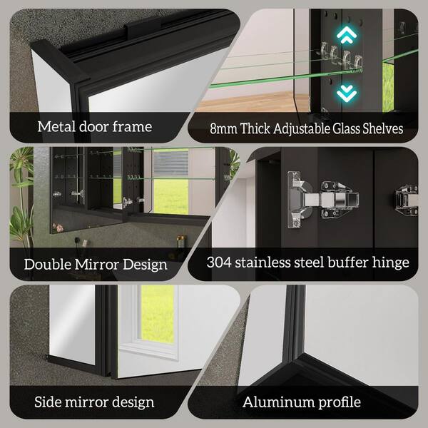 39.40 in. W x 29.53 in. H Rectangular Aluminum Alloy Medicine Cabinet with Mirror