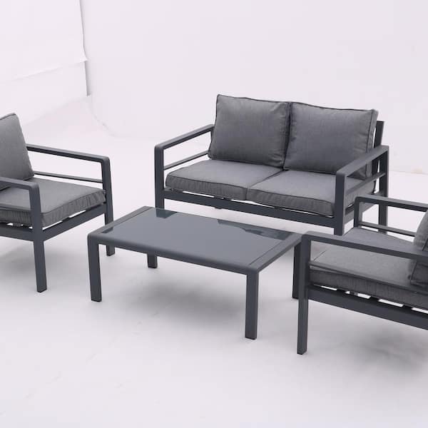 4-Piece Aluminum Patio Conversation Set with Grey Cushions