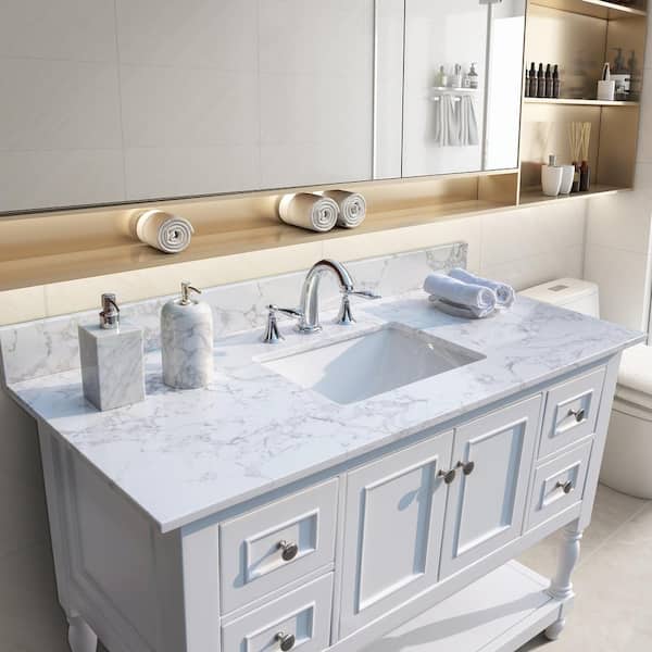 43 in. W x 22 in. D Engineered Stone Composite Carrara White Rectangular Single Sink Vanity Top