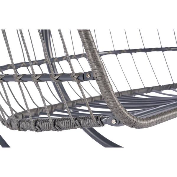 45.7 in. 2-Person Metal Frame and Wicker Patio Swing with Beige Cushions