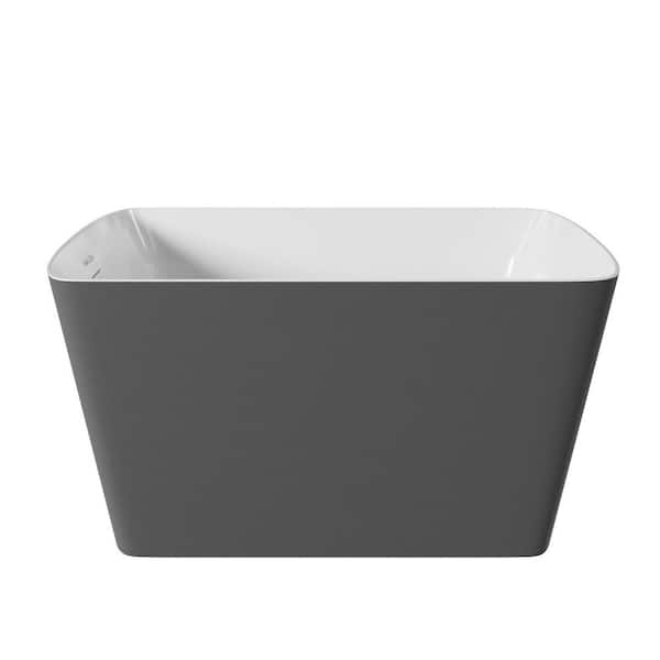47 in. x 28 in. Acrylic Freestanding Flatbottom Soaking Bathtub in Gray