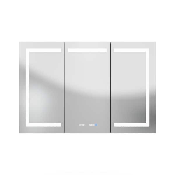 48 in. W x 32 in. H Rectangular Aluminum Medicine Cabinet with Mirror and Outlet and Light