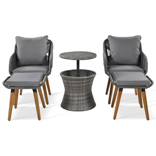 5-Piece Wicker Patio Conversation Set with Grey Cushions