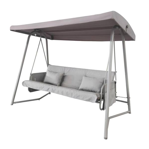 54.3 in. 3-Person Champagne Metal Patio Swing with Cushion and Adjustable Canopy