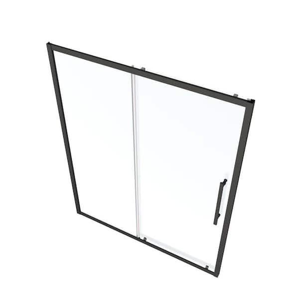 54 in. W x 72 in. H Sliding Semi-Frameless Shower Door in Matte Black Finish with Clear Tempered Glass