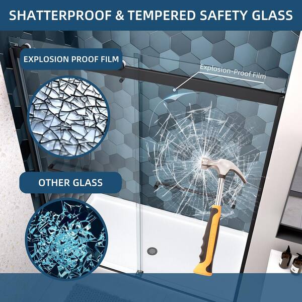 56-60 in. W x 74 in. H Double Sliding Semi-Frameless Shower Door in Matte Black Finish with Clear Tempered Glass