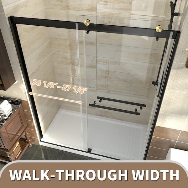 56-60 in. W x 74 in. H Single Sliding Semi-Frameless Shower Door in Matte Black Finish with Clear Tempered Glass