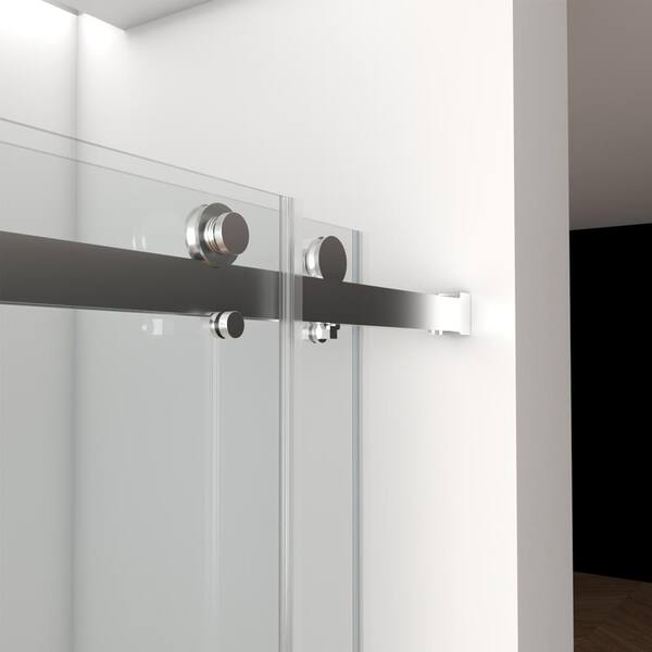 56 in. to 60 in. W x 70 in. H Double Sliding Frameless Shower Door in Brushed Nickel with Tempered Glass