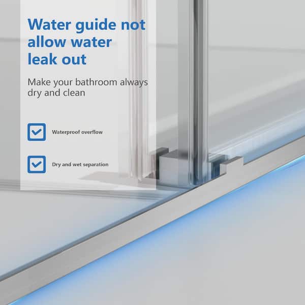 56 in. to 60 in. W x 76 in. H Double Sliding Frameless Shower Door in Brushed Nickel with Tempered Glass