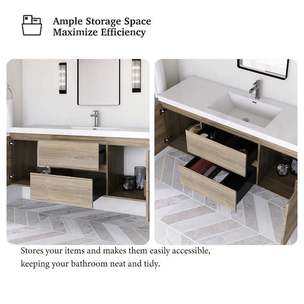 60 in. W x 20 in. D x 22 in. H Single Sink Floating Bath Vanity in Ash Grey with Glossy White Resin Top