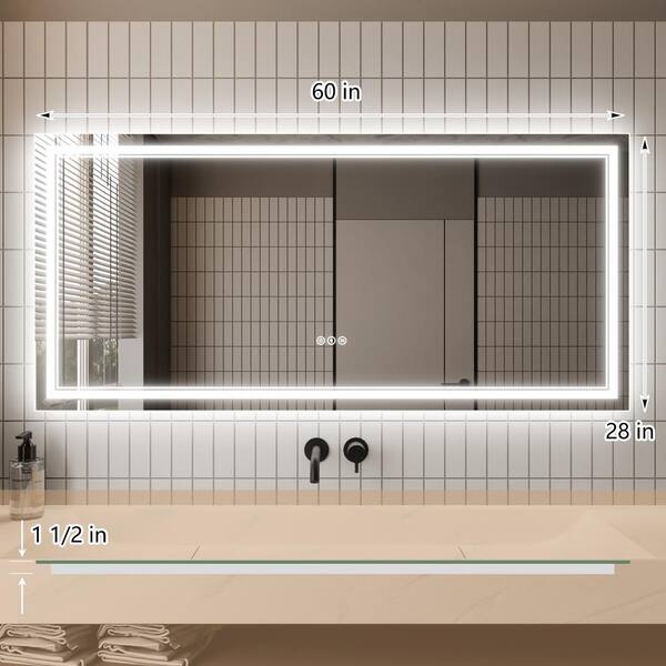 60 in. W x 28 in. H Rectangular Frameless Anti-Fog LED Light Vertical Wall Mounted Bathroom Vanity Mirror in Silver