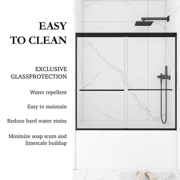 60 in. W x 58 in. H Double Sliding Tub Door in Matte Black with Clear Tempered Glass