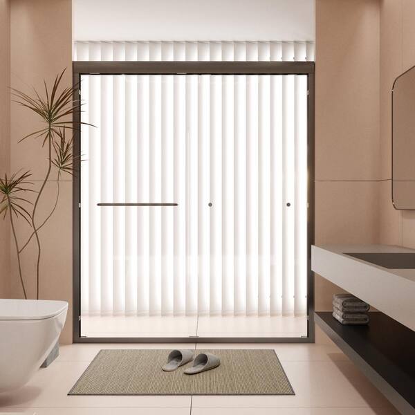 60 in. W x 70 in. H Double Sliding Semi-Frameless Shower Door in Black Finish with Clear Tempered Glass