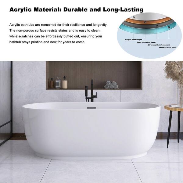 67 in. x 31.5 in. Acrylic Freestanding Flatbottom Soaking Bathtub in White