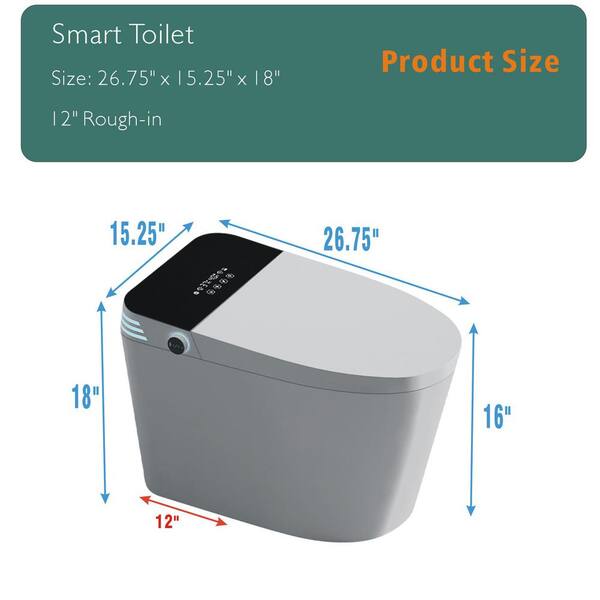Elongated Bidet Toilet 1.28 GPF in White with Auto Flush, Heated Seat, Warm Water and Dryer