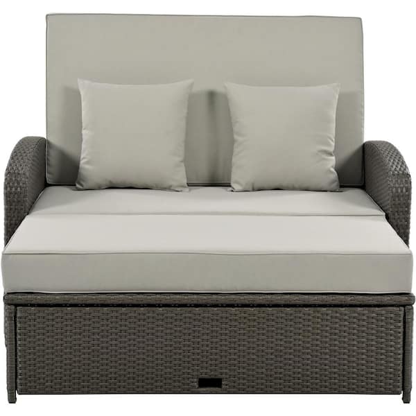 Gray Wicker Rattan Outdoor Day Bed with Gray Cushions