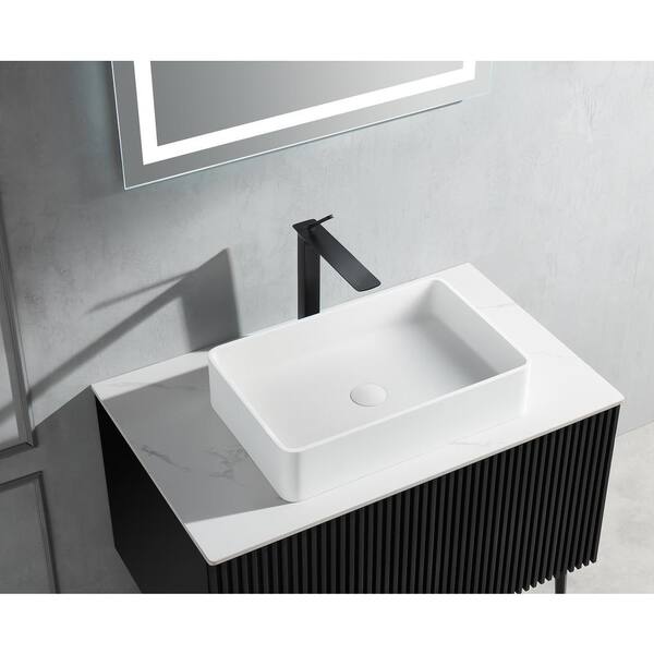 Matte White Stone Rectangular Vessel Sink without Faucet