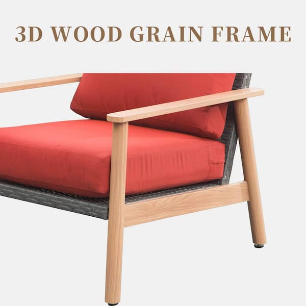 Red 4-Piece Metal Outdoor Sectional Set with Cushions, 2-Pillows