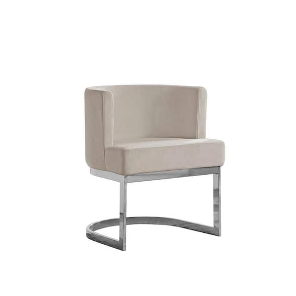 Joe Beige Velvet Chrome Legs Chair (Set of 1)