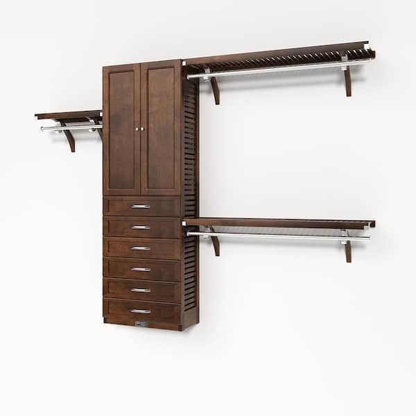 72 in. W - 120 in. W Chestnut Reach in with 6 Shaker Style Drawers and Wood Door 12 in. Shelf Wood Closet System