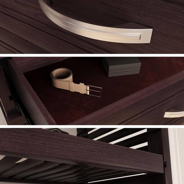 72 in. W-120 in. W Espresso Walk in with 5 Drawers 16 in.-Shelf Wood Closet System