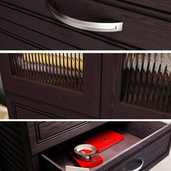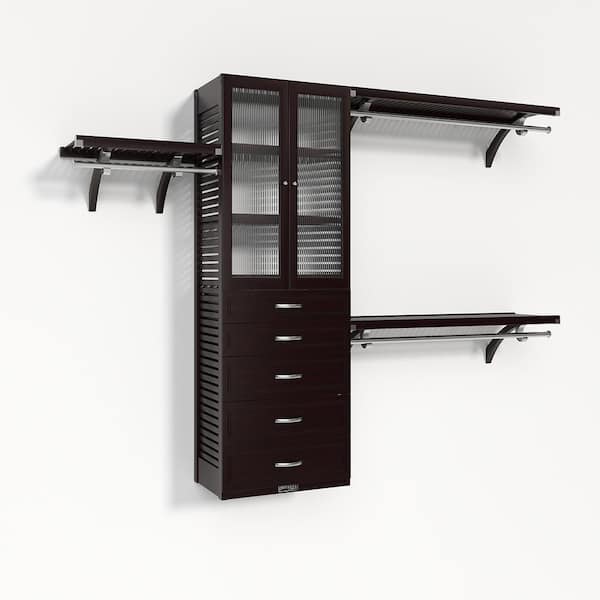 72 in. W - 120 in. W Espresso Walk in with 5 Drawers and Glass Door 16 in. Shelf Wood Closet System