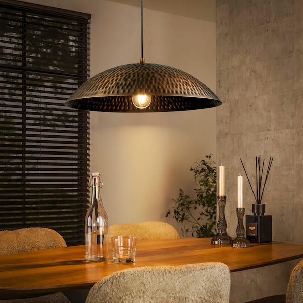 Johnnell 1-Light 19.69-in Industrial Antique Brass Dome Pendant Light