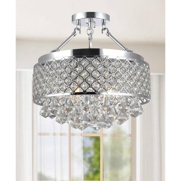 Ada 15 in. 4-Light Chrome and Crystal Semi Flush Mount