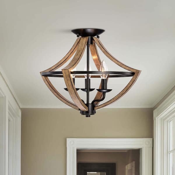Elsa 16.5 in. 3-light Antique Black Wood Grain Flush Mount with No Bulbs Included