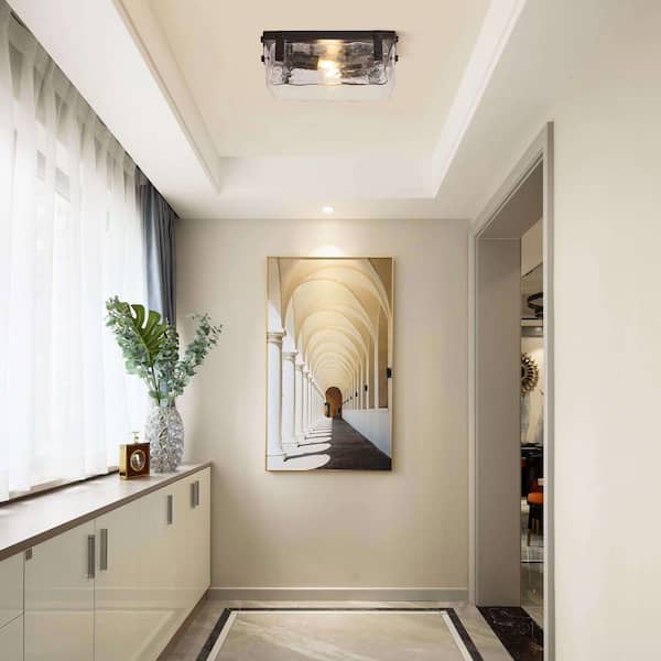 Elvira 11.8 in. Black 2-Light Hand Crafted Glass Square Flush Mount
