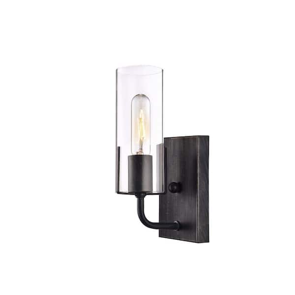 Hellen 4.3 in. 1-Light Antique Black Wall Sconce with Clear Glass Cylinder