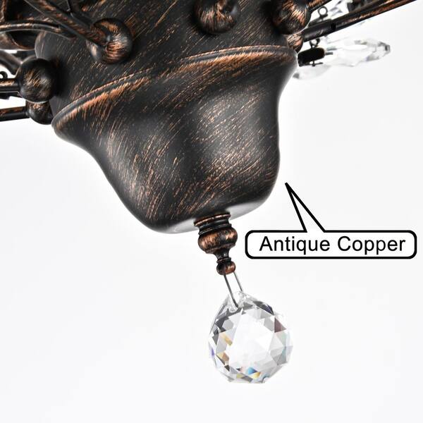 Lluvia 23.6 in. 4-Light Crystal Leaves Antique Copper Flush Mount with No Bulbs Included