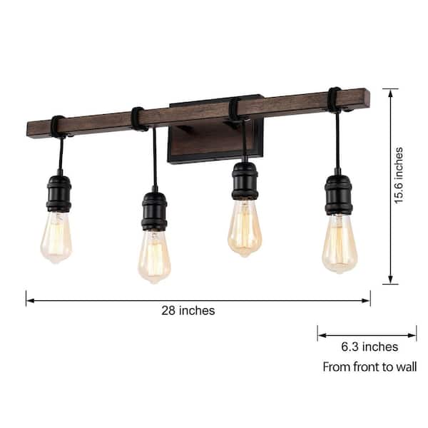 Mia 6.3 in Width 4-light Antique Black and Faux Wood Grain Finish Wall Sconce