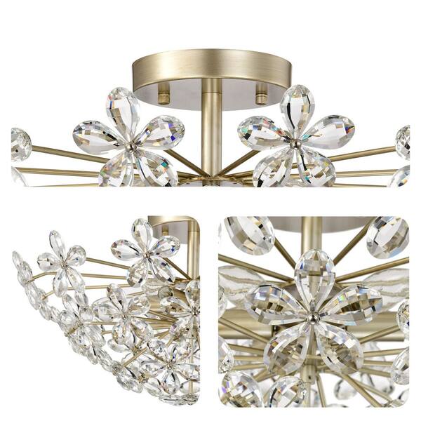 Teresa 22.4 in. 6-Light Brushed Silver-ish Champagne Flower Crystal Large Size Flush Mount