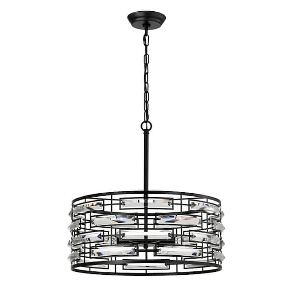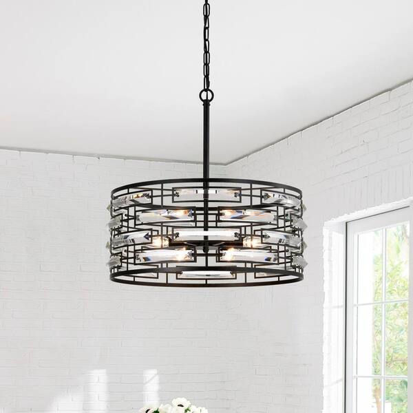 Yolanda 6-Light Antique Black Clear Glass Prism Drum Shape Chandelier -20 in. in Diameter x 18 in. H