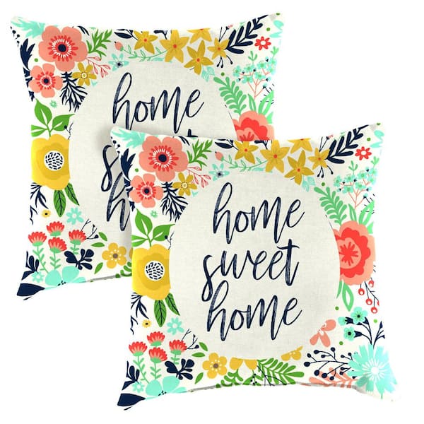 16 in. L x 16 in. W x 4 in. T Square Outdoor Throw Pillow in Home Sweet Home (2-Pack)