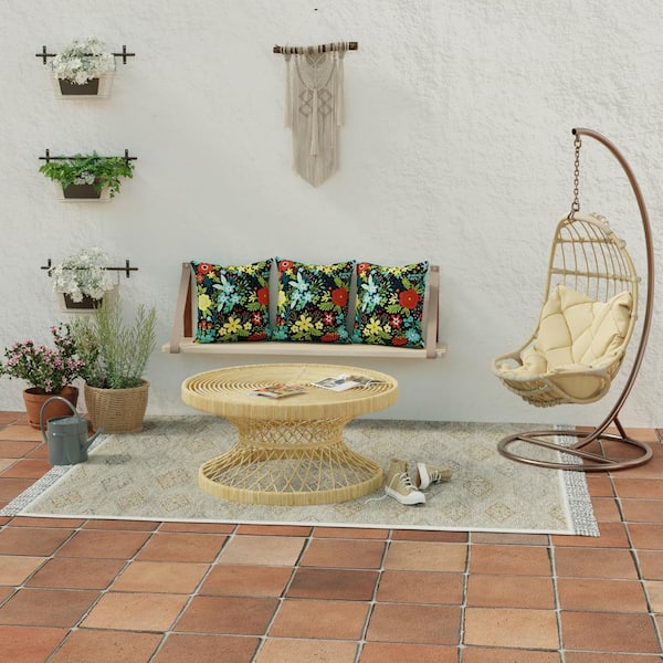 22 in. L x 22 in. W x 8 in. T Square Outdoor Throw Pillow in Black Floral (2-Pack)