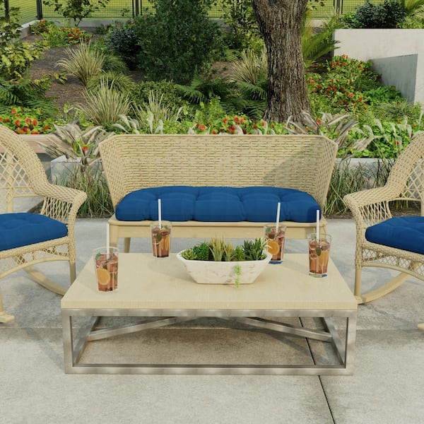 44 in. L x 18 in. W x 4 in. T Tufted Outdoor Wicker Bench Cushion in Tory Bisque