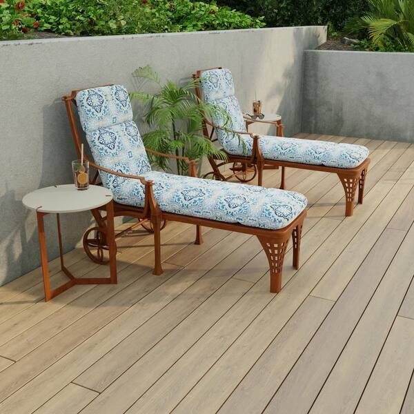 74 in. x 22 in. Rave Sky Blue Quatrefoil Rectangular Knife Edge Outdoor Chaise Lounge Cushion with Ties and Hanger Loop