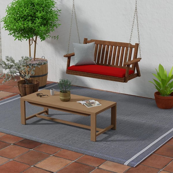 Sunbrella 48 in. x 18 in. Canvas Logo Red Solid Rectangular Knife Edge Outdoor Settee Swing Bench Cushion with Ties