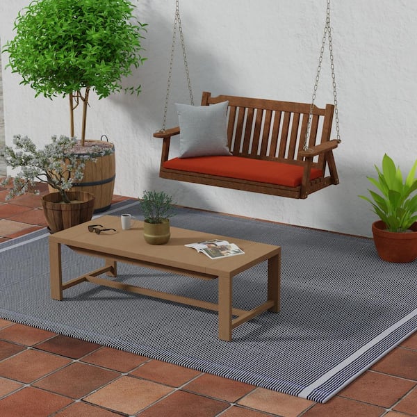 Sunbrella 48 in. x 18 in.Canvas Terracotta Red Solid Rectangular Knife Edge Outdoor Settee Swing Bench Cushion with Ties