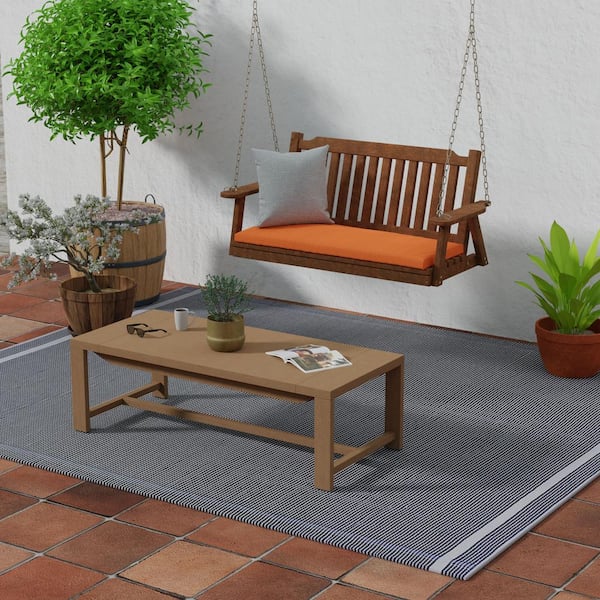 Sunbrella 48 in. x 18 in. Canvas Tuscan Orange Solid Rectangular Knife Edge Outdoor Settee Swing Bench Cushion with Ties