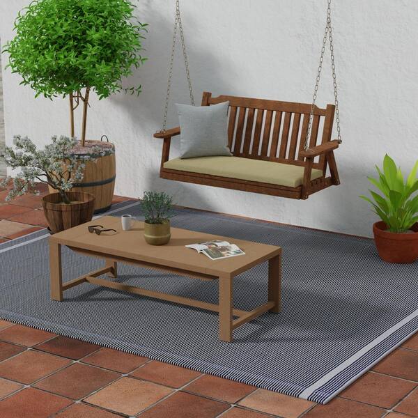 Sunbrella 48 in. x 18 in. Heather Beige Solid Rectangular Knife Edge Outdoor Settee Swing Bench Cushion with Ties