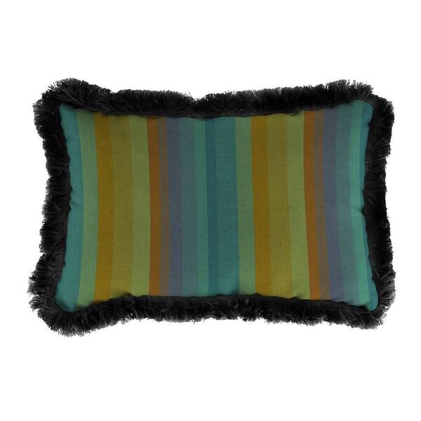 Sunbrella 9 in. x 22 in. Astoria Lagoon Lumbar Outdoor Pillow with Black Fringe