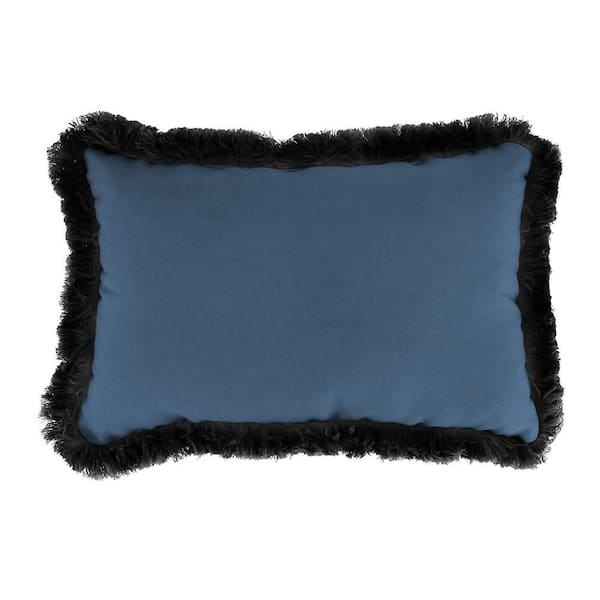 Sunbrella 9 in. x 22 in. Canvas Sapphire Blue Lumbar Outdoor Pillow with Black Fringe