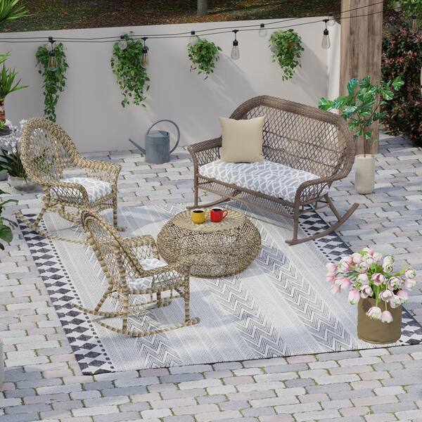 Tufted Outdoor Wicker Cushion Set for Bench and 2-Chair Seats in Chauncey Pumice