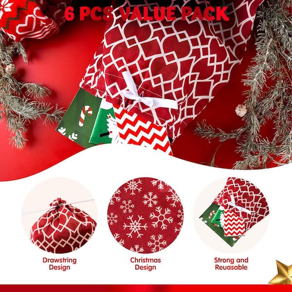 6 Pieces Fabric Gift Bags Red Elegant Color with 3 Sizes for Each Season, Holiday Present Giving