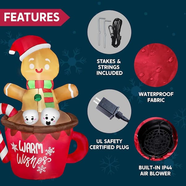 6 ft. Tall Christmas Inflatable Gingerbread Man in Hot Cocoa Mug with Build-in LEDs, Blow Up Yard Decoration