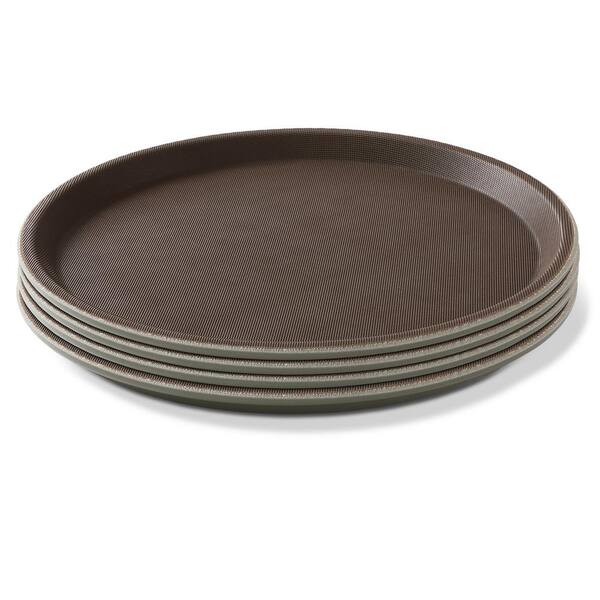 11 in. x .75 in. Round Plastic Non-Slip Serving Trays, Brown-NSF Food Service (Set of 4)